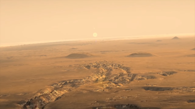 Depending on where the landing site was, the astronauts might see giant canyons, dry lake beds, ancient crators and huge shield volcanos like Olympus Mons which is the largest of it’s kind within our entire solar system, however these lonely alien landscapes might not be visible as Mars can experience intense storms that can kick up dust 25 miles into the air and can be big enough to cover the entire planet. The astronauts would feel cold as the average temperature of Mars is a frigid -63 degree celsius or -81 degree fahrenheit, but it can fluctuate to a warming 26 degree celsius along the equator during the martian midday summer.