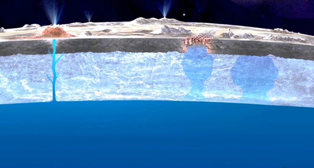 Another place in our solar system where the ocean exist is Enceladus which is a moon of Saturn, it is a very tiny moon with a surface area similar to that of Chile, this tiny moon is constantly spewing water into the space in fact it is losing around 200 kilograms a second and due to it’s flexibility and water it is kind of obvious that there is an ocean underneath the crust and through the inspection of water that was spewed we know that it has a variety of molecules in it which indicates a good chance of life existing.